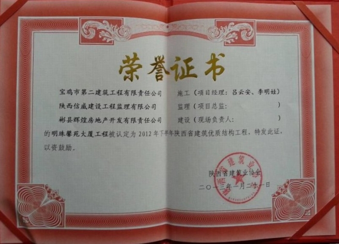2012年省優(yōu)質(zhì)結(jié)構(gòu)(明珠馨苑)