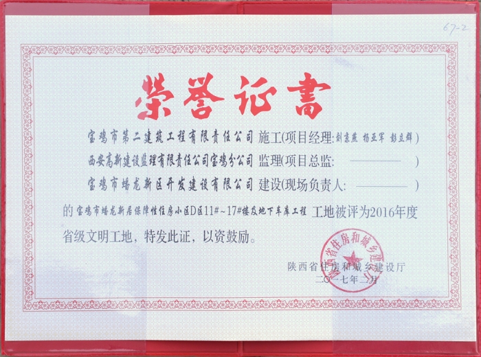 2017年度省級文明工地(寶雞文化藝術(shù)中心)