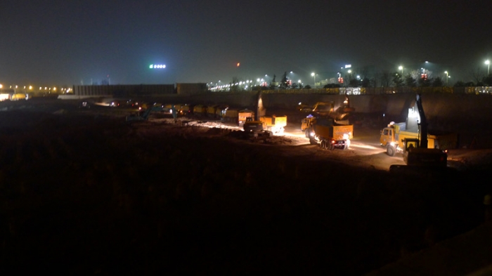 針對項目作業(yè)面積大、標高復雜、工期緊張、施工難度大等特點,為完成整體基礎(chǔ)樁間土方開挖工作,在項目經(jīng)理的帶領(lǐng)和指導下,工程施工前做好施工方案編制、審核以及審批,確?!胺桨赶刃小⑹┕ぴ诤蟆?,使每一步有章可循;強化安全、技術(shù)交底,確保施工進度和施工效率;項目部全體員工合理分配時間,不分晝夜進行土方開挖施工作業(yè),確保 24小時對土方作業(yè)進行不間斷管控。
