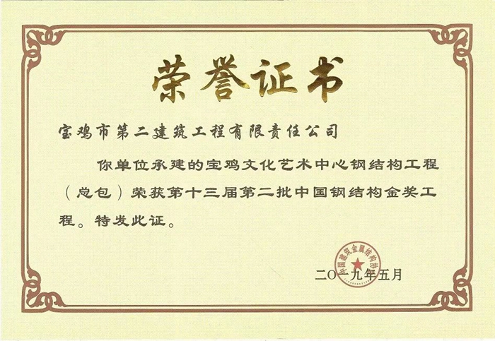 2019年中國鋼結(jié)構(gòu)金獎(jiǎng)工程(寶雞市文化藝術(shù)中心鋼結(jié)構(gòu)工程)