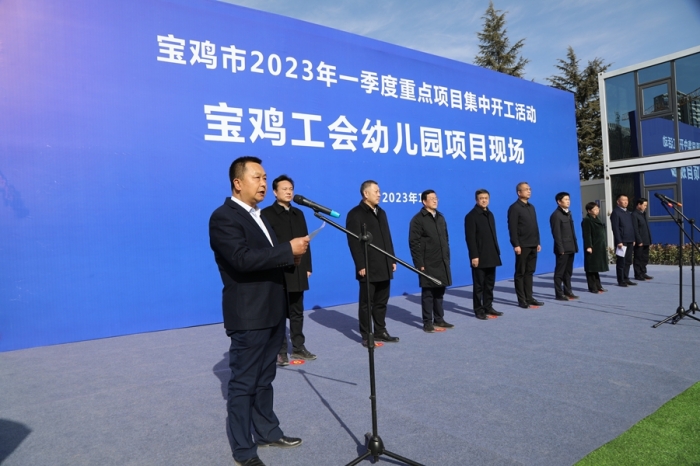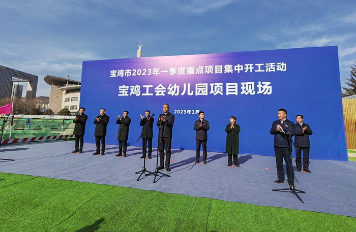 1月28日,寶雞市2023年一季度重點項目集中開工活動在集團公司承建的寶雞市總工會幼兒園項目現(xiàn)場舉行,市委書記楊廣亭下達開工令,市長王勇、市人大常委會主任景耀平、市政協(xié)主席劉榮賢、市委副書記段小龍參加活動。市委常委、常務副市長賈珉亮主持開工活動。市人大常委會副主任、市總工會主席陳小平介紹項目情況。