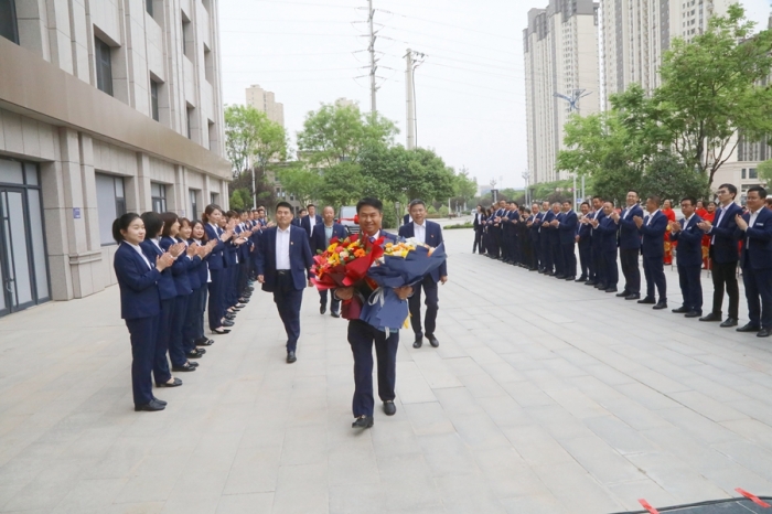 鑼鼓喧天報(bào)喜訊,鮮花掌聲迎勞模。集團(tuán)公司高層領(lǐng)導(dǎo)、總部全體員工及三十九項(xiàng)目部員工在總部辦公大樓前迎接寶雞市五一勞動(dòng)獎(jiǎng)?wù)芦@得者李紅軍同志載譽(yù)歸來。