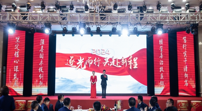 集團公司高層領(lǐng)導、中級管理人員、受表彰獎勵的優(yōu)秀單位和個人、總部全體及2023年度新員工,共計300余人參加了會議。副總經(jīng)理、總會計師嚴海軍主持會議。